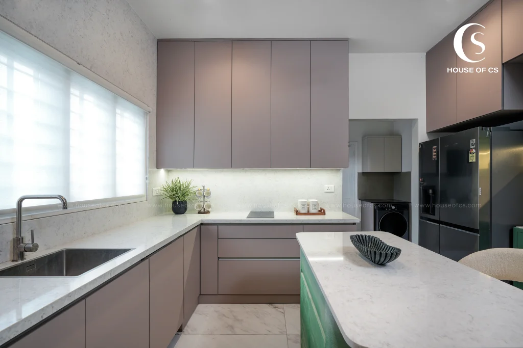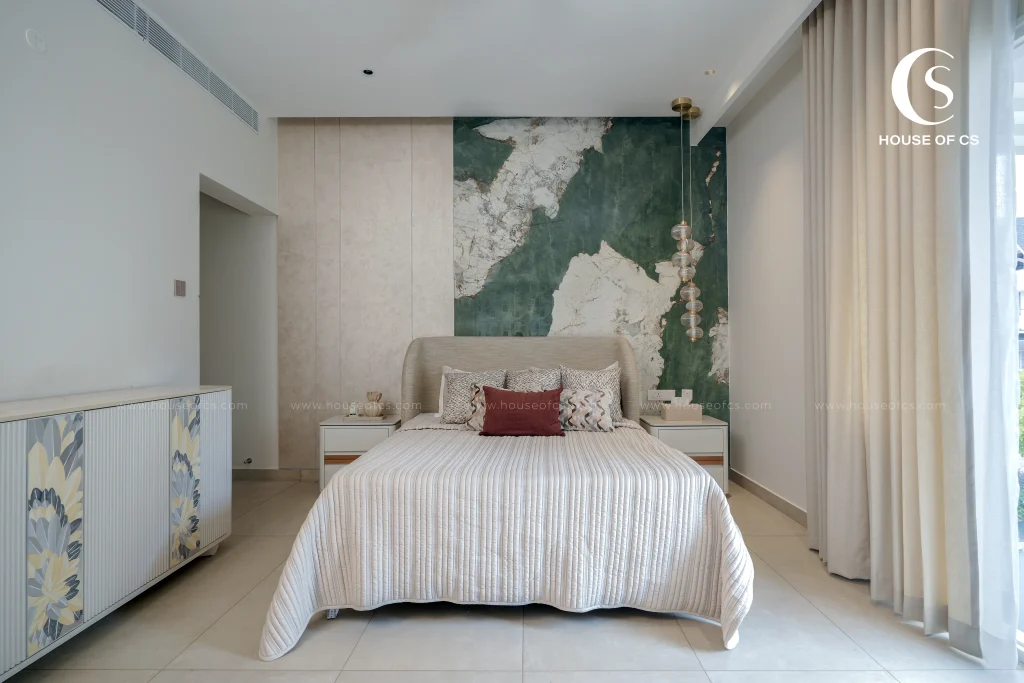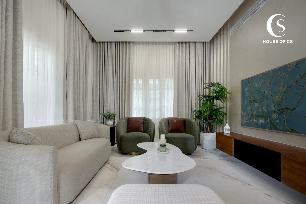 Designed and executed by House of CS – Best Interior Designers in Kochi, The Flow House Project is a soulful celebration of calmness, imperfection, and authenticity. Created for Mr. Kurian and Mrs. Deepa, the home draws deep inspiration from the Wabi-Sabi philosophy — a design approach that finds beauty in simplicity, aging materials, and natural harmony. The project embraces an earthy palette, organic forms, and tactile finishes that evolve gracefully over time. Every element — from the texture of unfinished walls to the warmth of natural wood — contributes to a soothing visual rhythm that mirrors the essence of flow. The design invites nature inside, allowing light, breeze, and shadows to become part of everyday living. Instead of focusing on perfection, the Flow House celebrates the beauty of being real — where each imperfection tells a story and every surface carries a sense of quiet character.