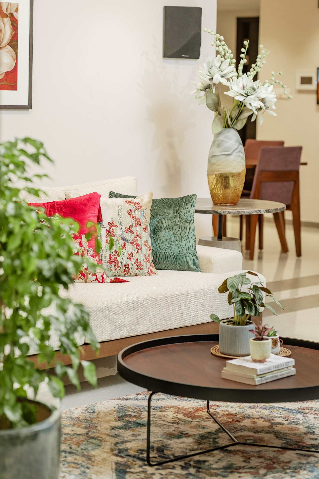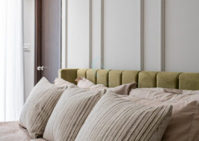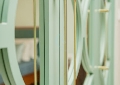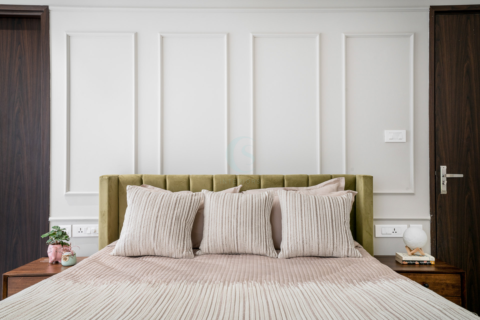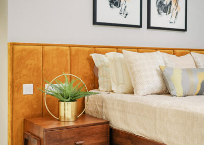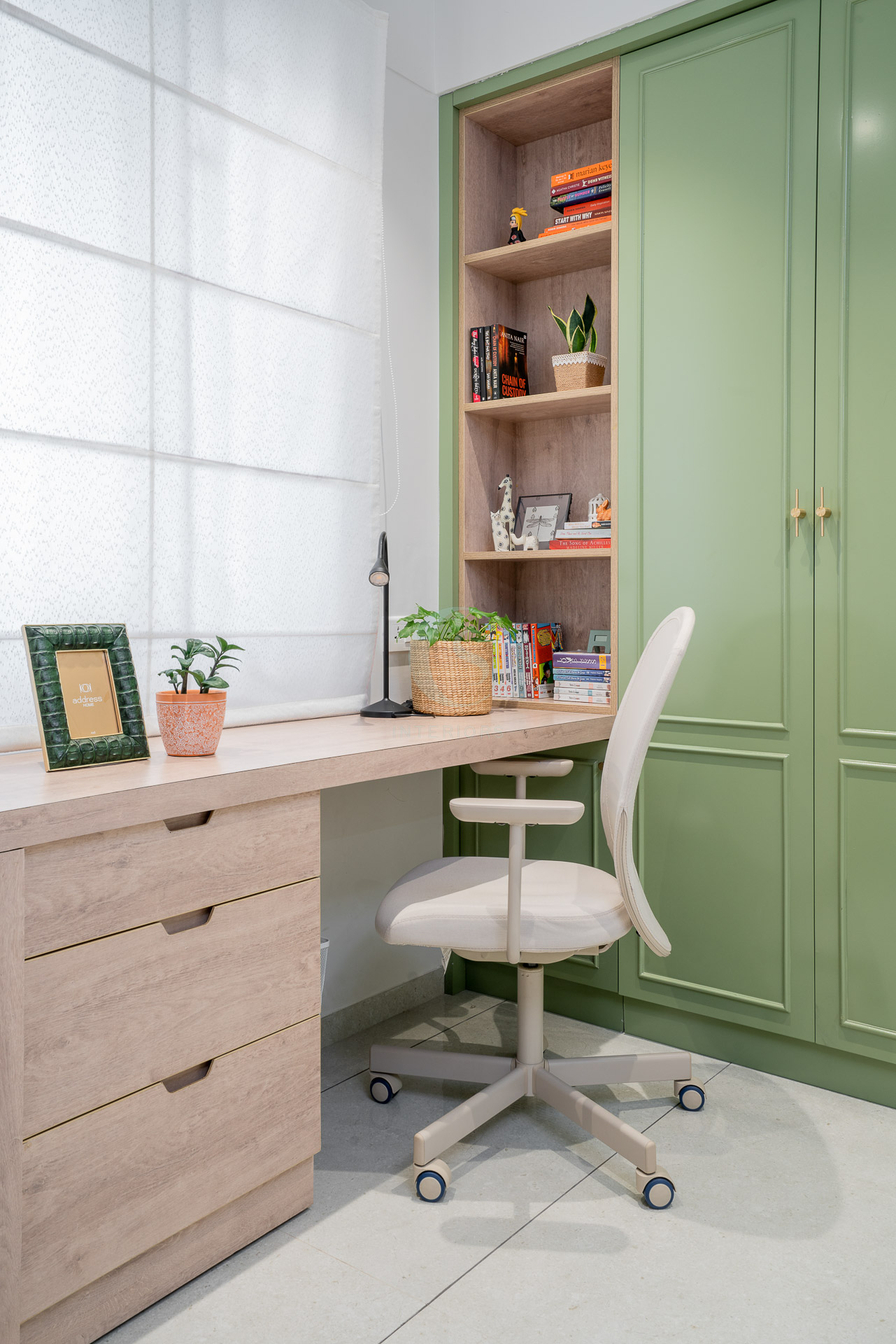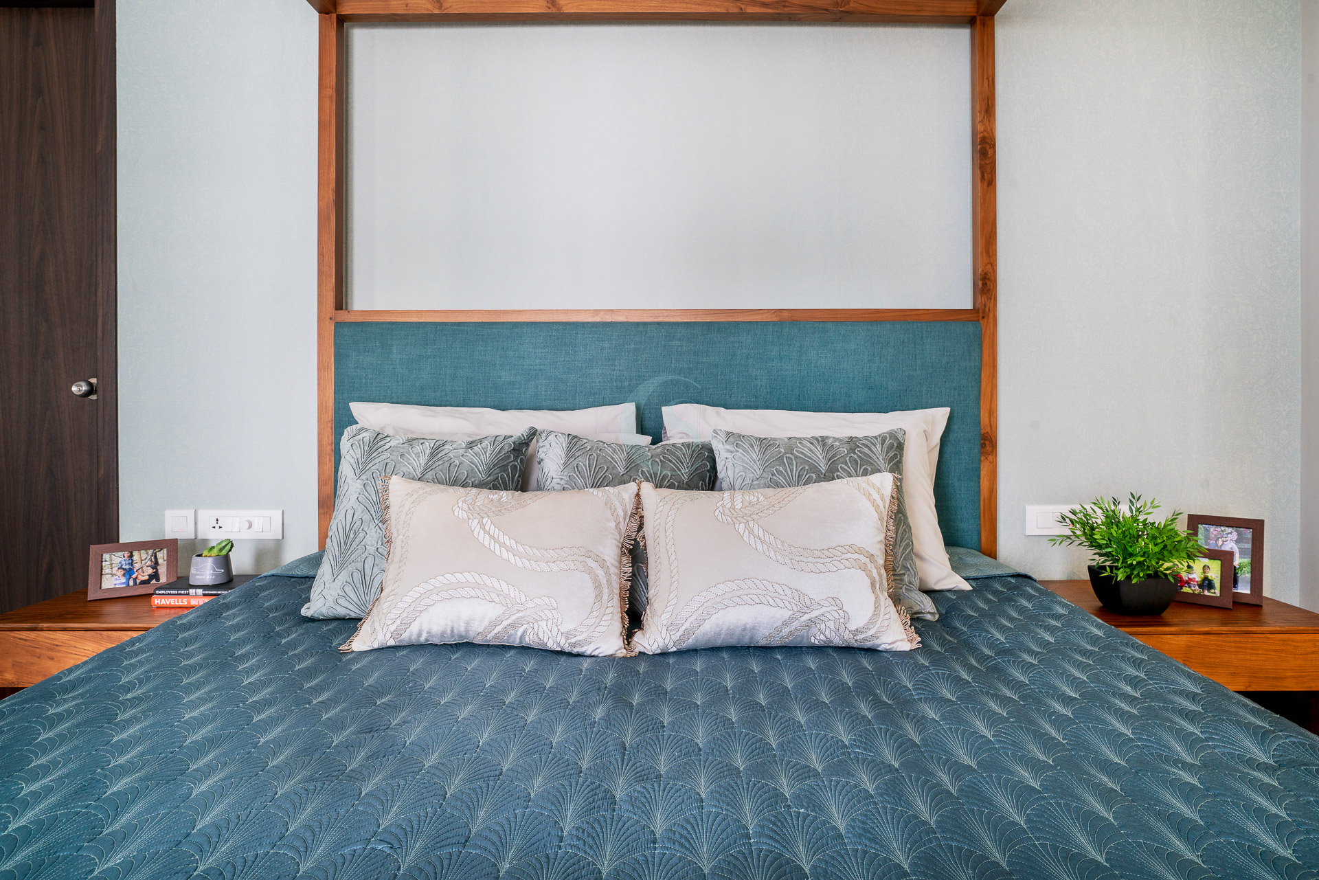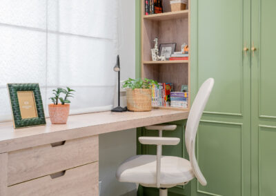 Playful bursts of floral patterns tied the interiors together, while each bedroom carried its own distinct identity. The master bedroom was anchored by a calming blue wallpaper — a designer’s personal favorite. The guest bedroom broke new ground with a bold black wardrobe, softened by mustard tones for a balanced, contemporary look.